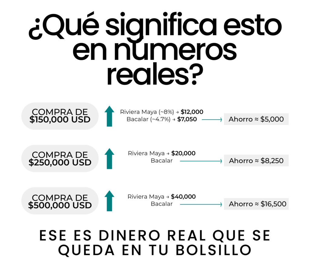Para inversionistas enfocados en eficiencia, los costos de cierre inmobiliarios en Bacalar siguen siendo una ventaja competitiva frente a Tulum, Playa del Carmen y Cancún.