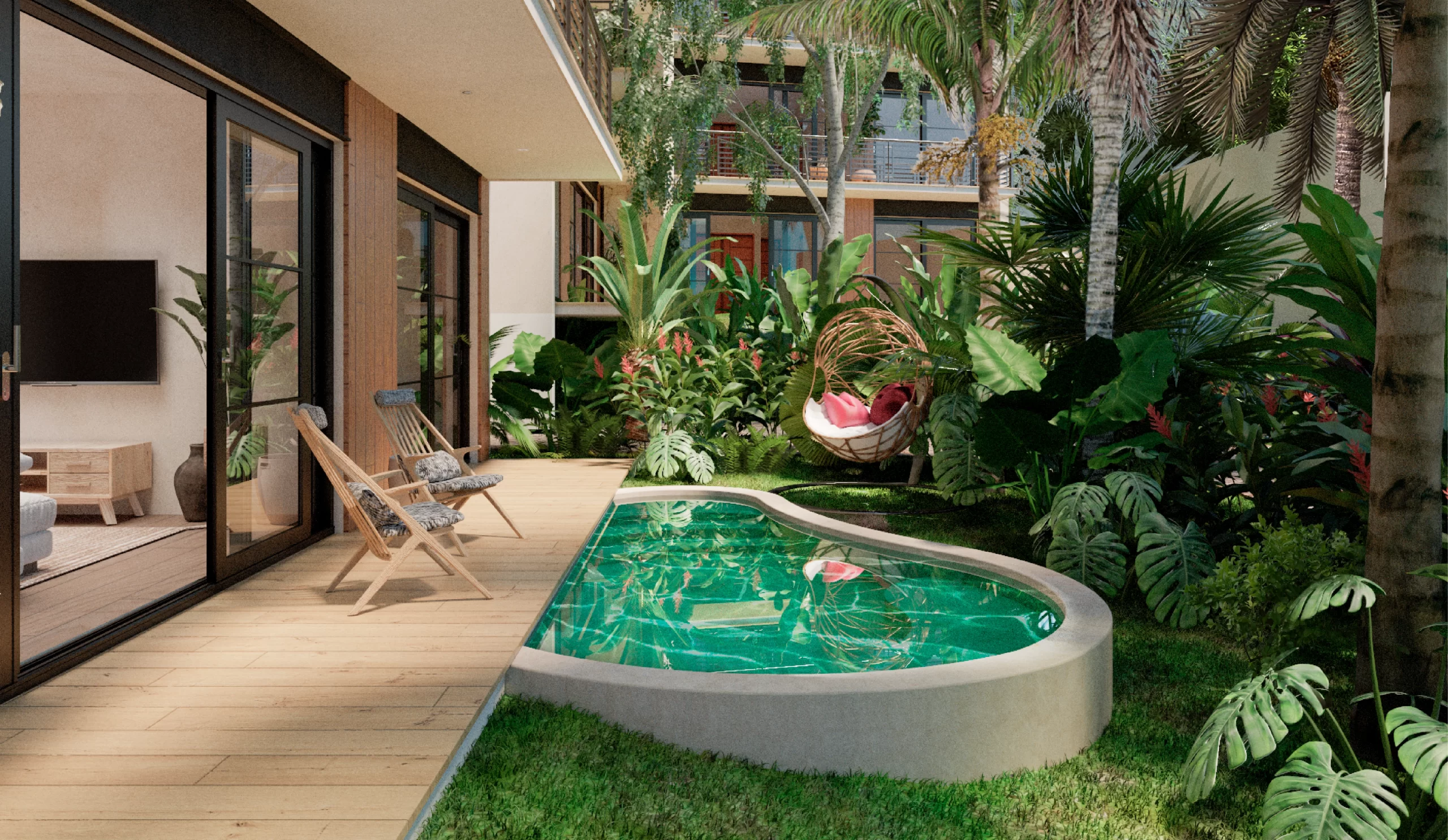 Our residences boast expansive open floor plans, featuring generous living and outdoor terrace areas perfect for entertaining or simply soaking up the lagoon’s soothing breezes. With a focus on versatility, our 2-bedroom lock-off units offer both privacy and the opportunity for attractive rental yields. For those desiring more space, our 3-bedroom penthouse suites feature private pools, setting the stage for a truly unparalleled living experience. Welcome to Namaste Bacalar, where luxury meets tranquility.